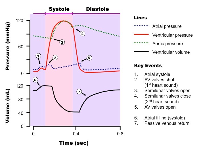 H.5.1 Explain the events of the cardiac cycle, including atrial and ventricular systole and diastole, and heart sounds