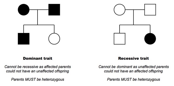 - If two parents are unaffected, all offspring must be unaffected (homozygous recessive)