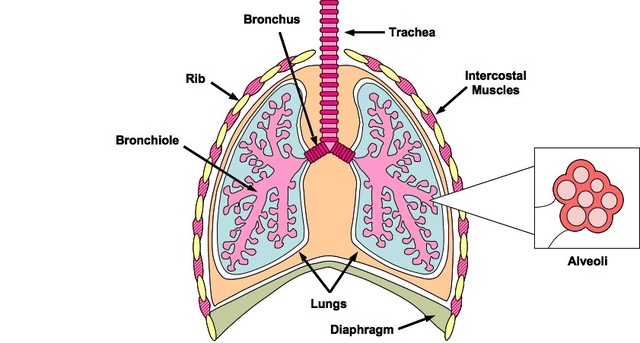 6.4.4 Draw an label a diagram of the ventilation system, including trachea, lungs, bronchi, bronchioles and alveoli
